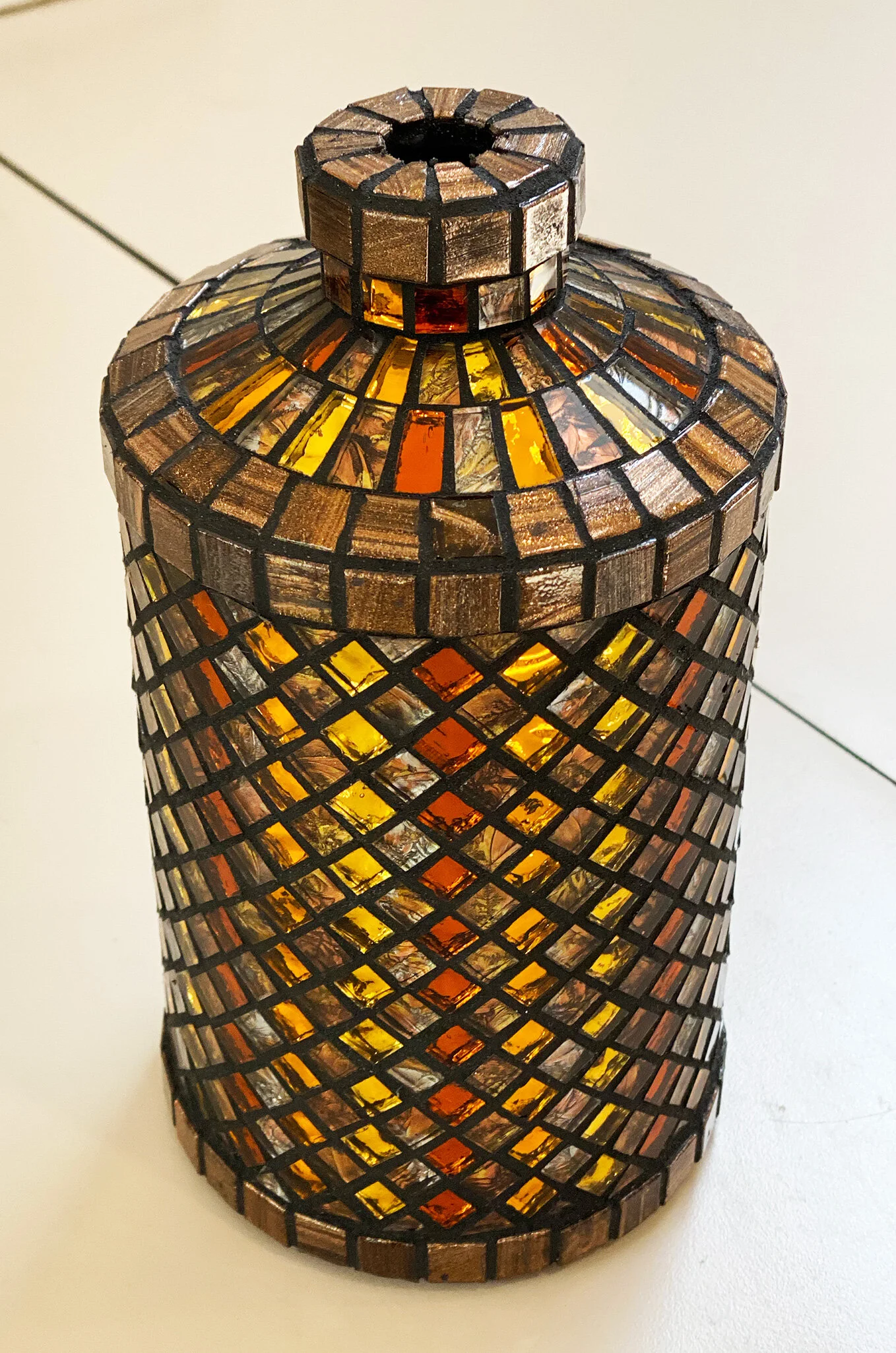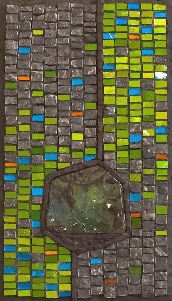 Fugue in Four Voices (2025) 11” x 27” | 28cm x 69cm. Mosaic gold (Orsoni 002 006, 010, 014), charcoal cement