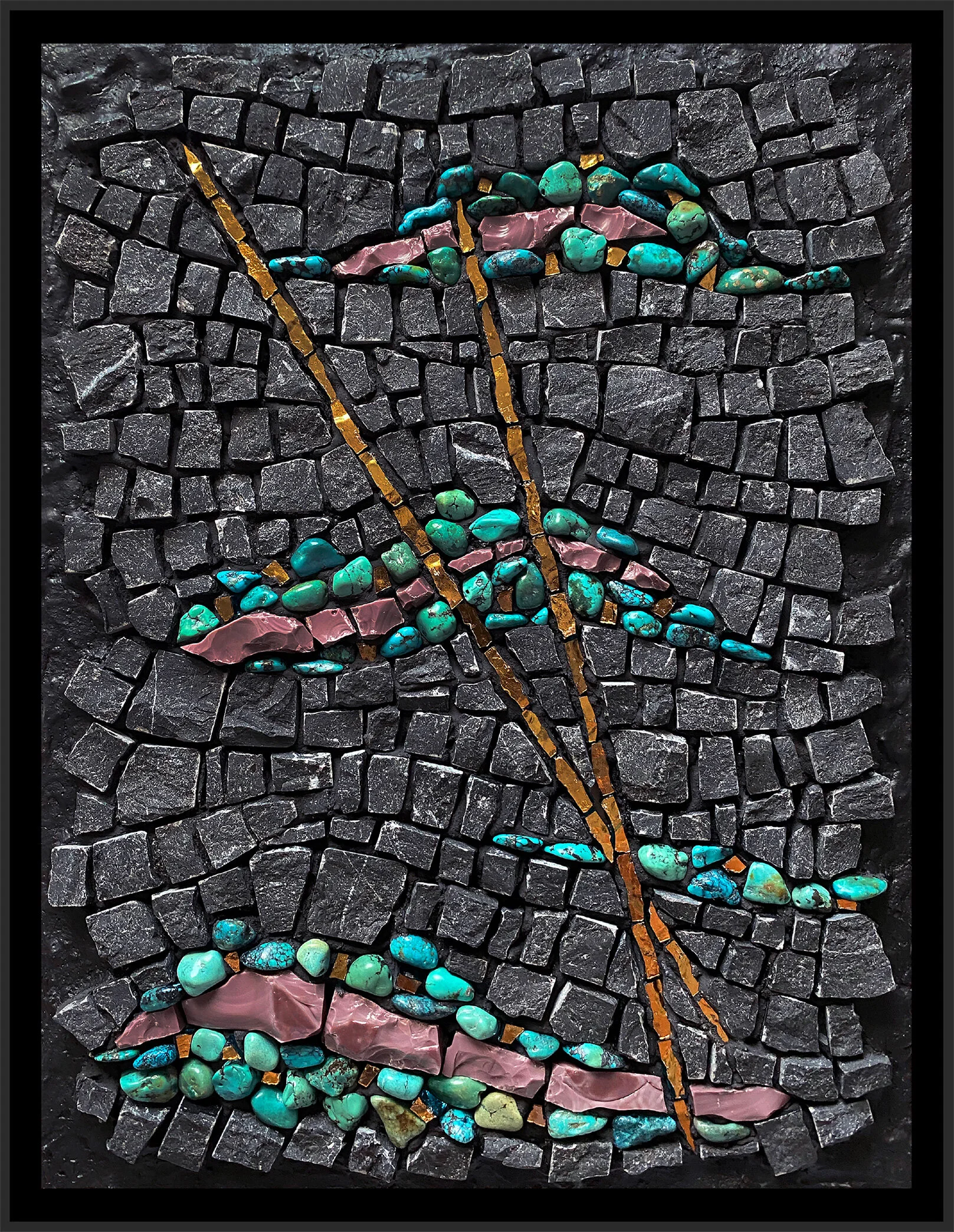 Next, I’ll probably draw in some andamento lines and then I am ready to get started on this. Fortunately, I have most of the materials in stock. I did have to order a little more teal and cobalt iridescent tile as I have very little of that.